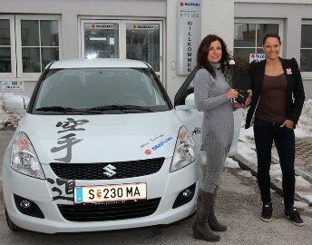 Ich habe heute, am 19.02.2013 von der Fa. Suzuki einen neuen Suzuki Swift zur Verfügung gestellt bekommen. Es ist mir eine Ehre neuer Werbepartner von Suzuki zu sein und ich freue mich auf eine Zusammenarbeit. Ich möchte mich vor allem bei Rudi Landertinger, der den Deal einfädeltet und bei Fr. Mag. Barbara Thun - Hohenstein, der Marketingleiterin von Suzuki Austria sehr herzlich bedanken. Es ist für mich natürlich angenehm, dass ich mit dem Suzuki Swift zum Training und auch zu den Wettkämpfen fahren kann. Vielen herzlichen Dank für die Unterstützung.